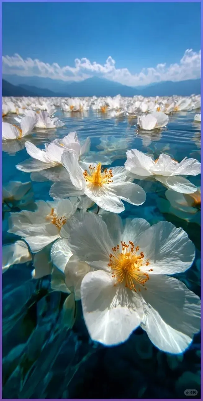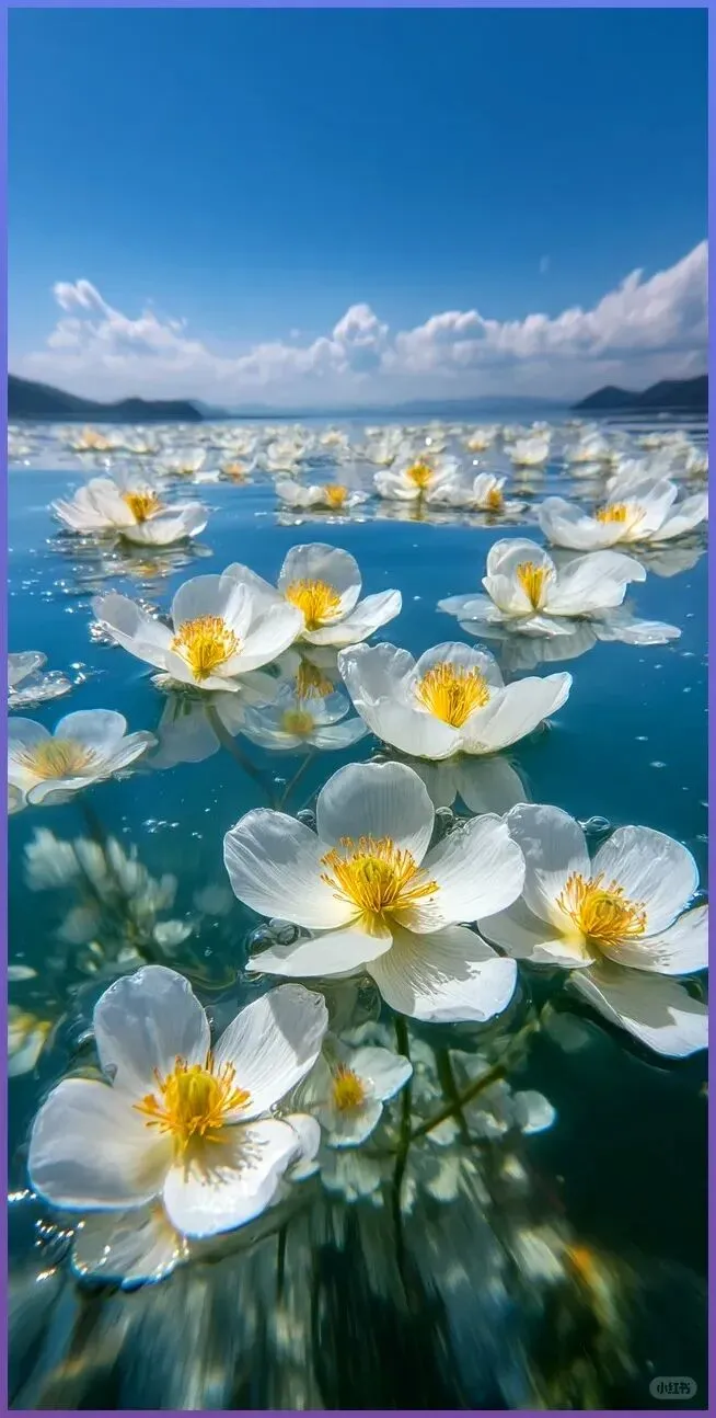 虽然名字听起来有点"渣",但人家可是云南高原上的宝藏小仙女!洁白的花瓣漂浮在碧蓝湖水上,清新又梦幻✨