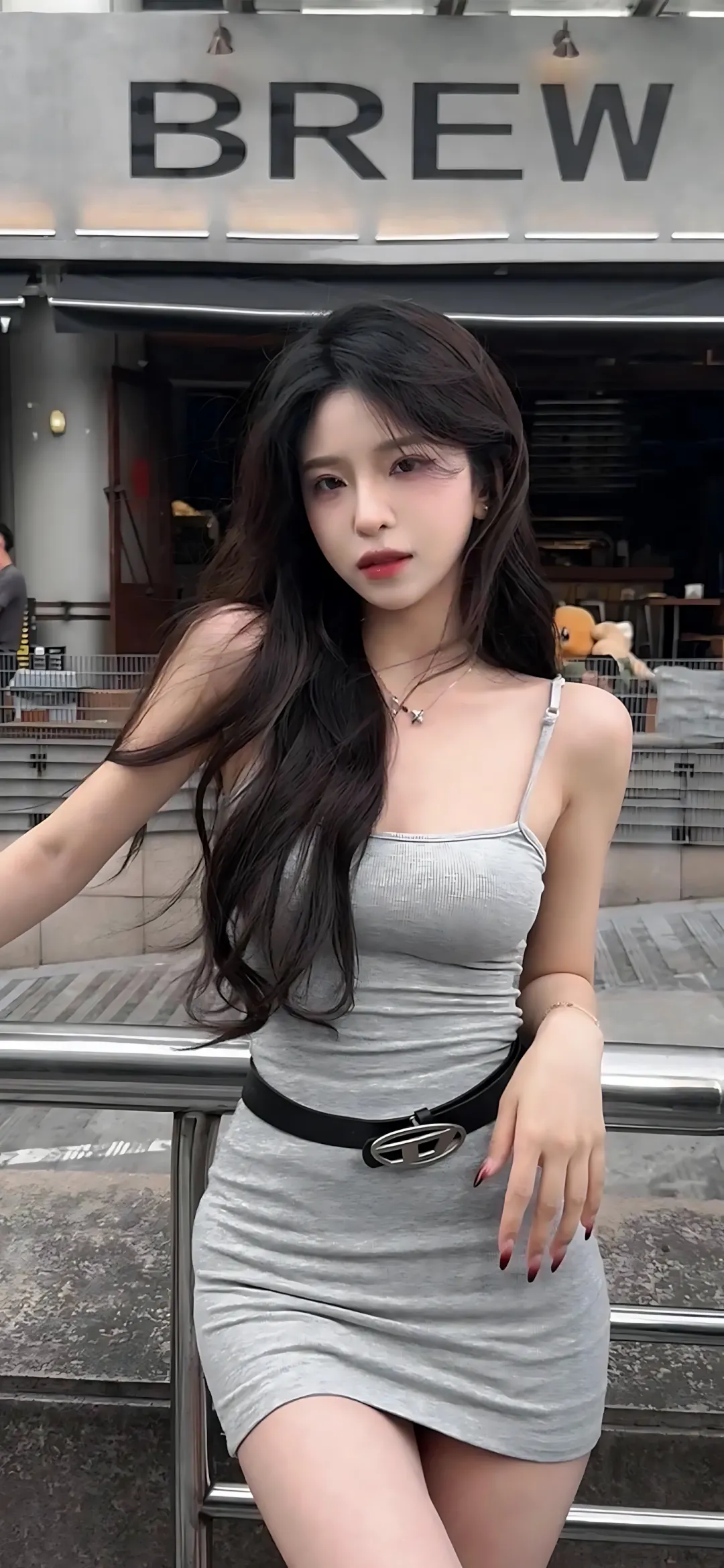 白鹿|手机壁纸精选,粉色抹胸裙美腿穿搭