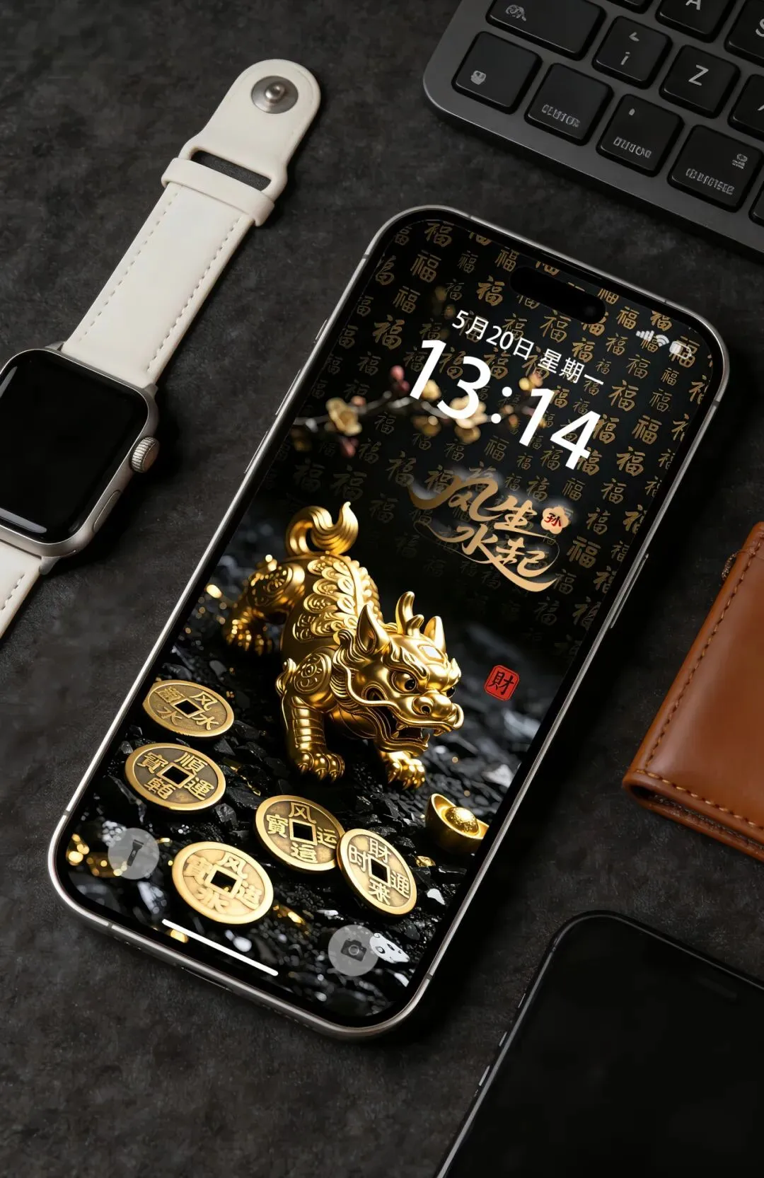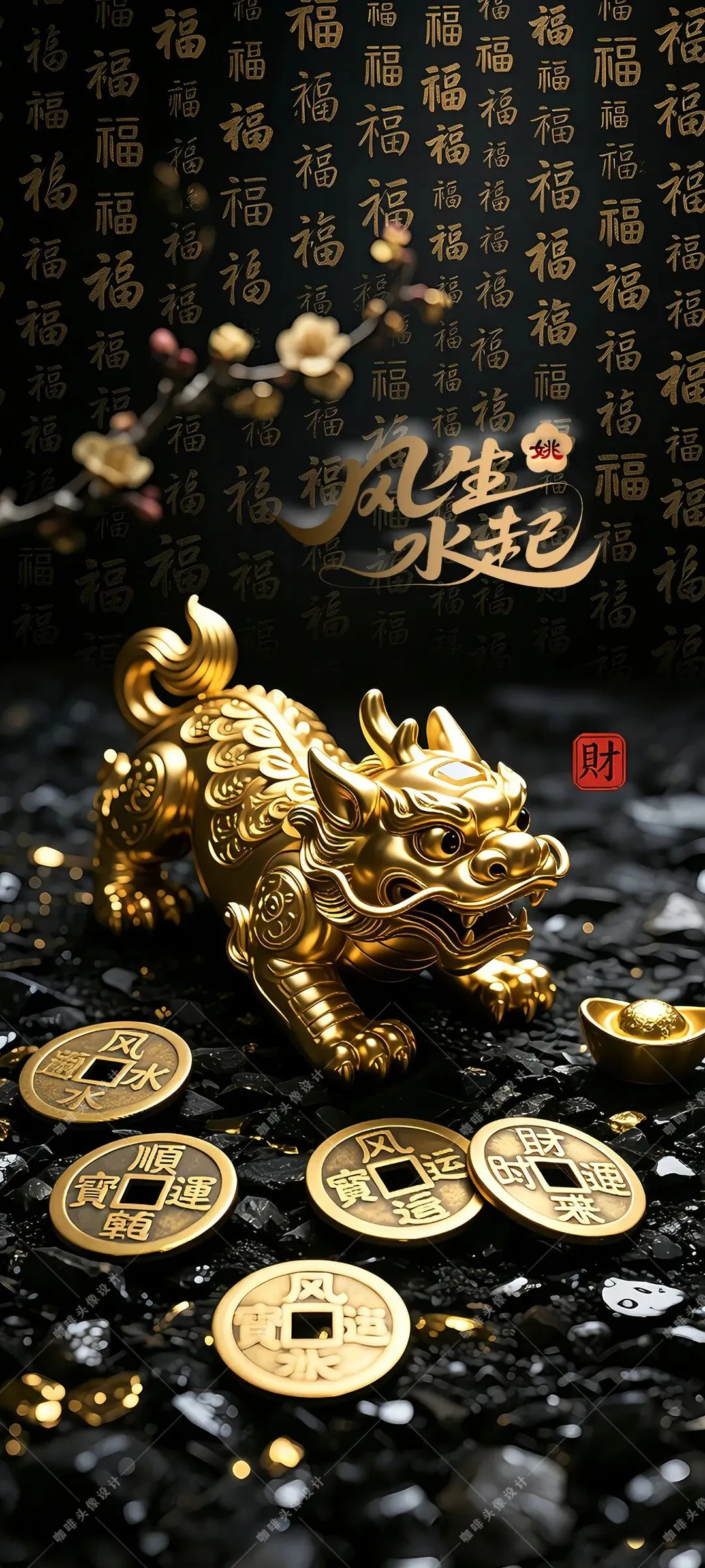 >风生水起创意手机壁纸,招财貔貅